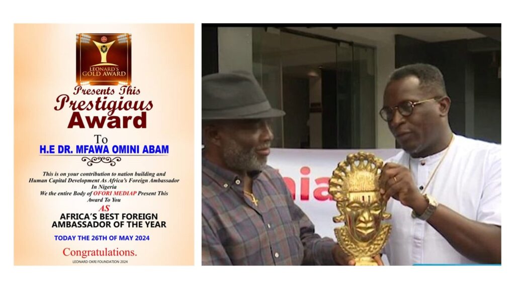 On May 26, 2024, Ambassador MFawa Omini Abam received the prestigious African Best Ambassador of the Year award in Edo State, Nigeria. This accolade highlights his exceptional contributions and dedication to fostering strong international relations, particularly in his role as the Nigerian Ambassador to Italy.