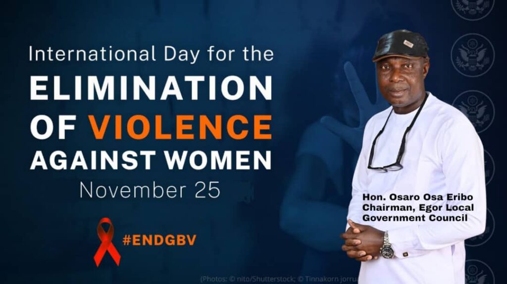 As the world marks the International Day for the Elimination of Violence Against Women, the Executive Chairman of Egor Local Government Council, Hon. Osaro Osa Eribo, has called for united action in protecting women and girls from all forms of violence, abuse, and discrimination.