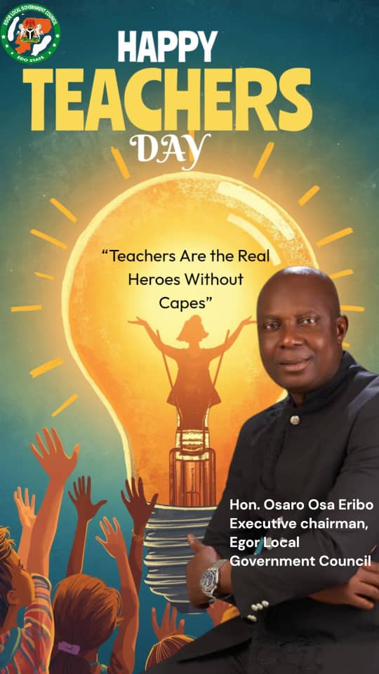 The Executive Chairman of Egor Local Government Council, Hon. Osaro Osa Eribo, has released a special message to commemorate World Teachers’ Day 2025. In his message, Hon. Eribo commended teachers for their dedication to shaping young minds and preparing future leaders.