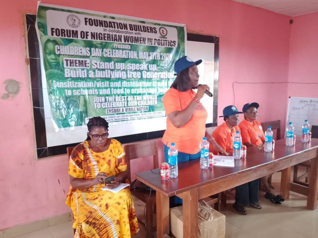 The call was made by Foundation Builders in collaboration with Forum of Nigerian Women in Politics during a Sensitization and distribution of note books to schools and Food to orphanage homes in commemoration of children day, 2025.