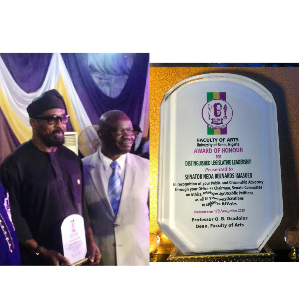 Highlighting his contributions to education in Edo South, Senator Imasuen revealed that he has awarded over 420 scholarships in the past two years, including two to UNIBEN students in the Music and Educational Management departments. He also disclosed that he has paid Joint Admissions and Matriculation Board (JAMB) fees for more than 500 students, introduced vocational programmes for parents in farming, tailoring, and traditional event services, and is planning skills training for 350 youths in boundary security.